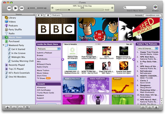 - Browse thousands of podcasts on the iTunes Music Store